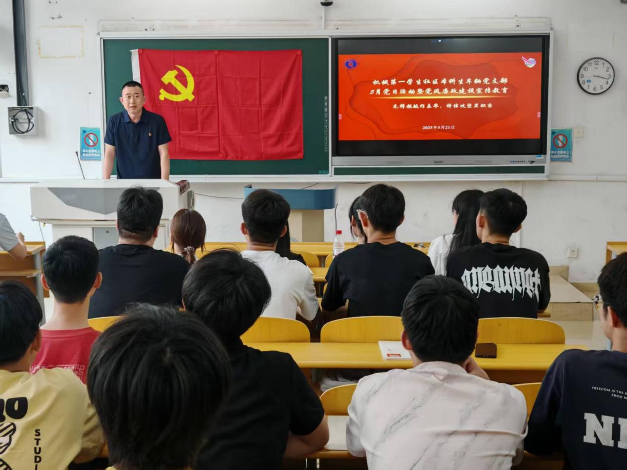 为深入学习贯彻习近平总书记关于加强党的作风建设的重要论述和中央八项规定精神,推动实施“先锋计划”及高效有序迎接本科教育教学评估工作,提升党员的政治理论水平,深化作风建设成效,强化责任担当意识,2025年5月21日,机械第一学生社区本科生车辆党支部召开5月党日活动暨党风廉政建设宣传教育和《习近平关于加强党的作风建设论述摘编》第4-6专题学习研讨,支部全体党员、入党积极分子和发展对象代表共计55人参加会议。