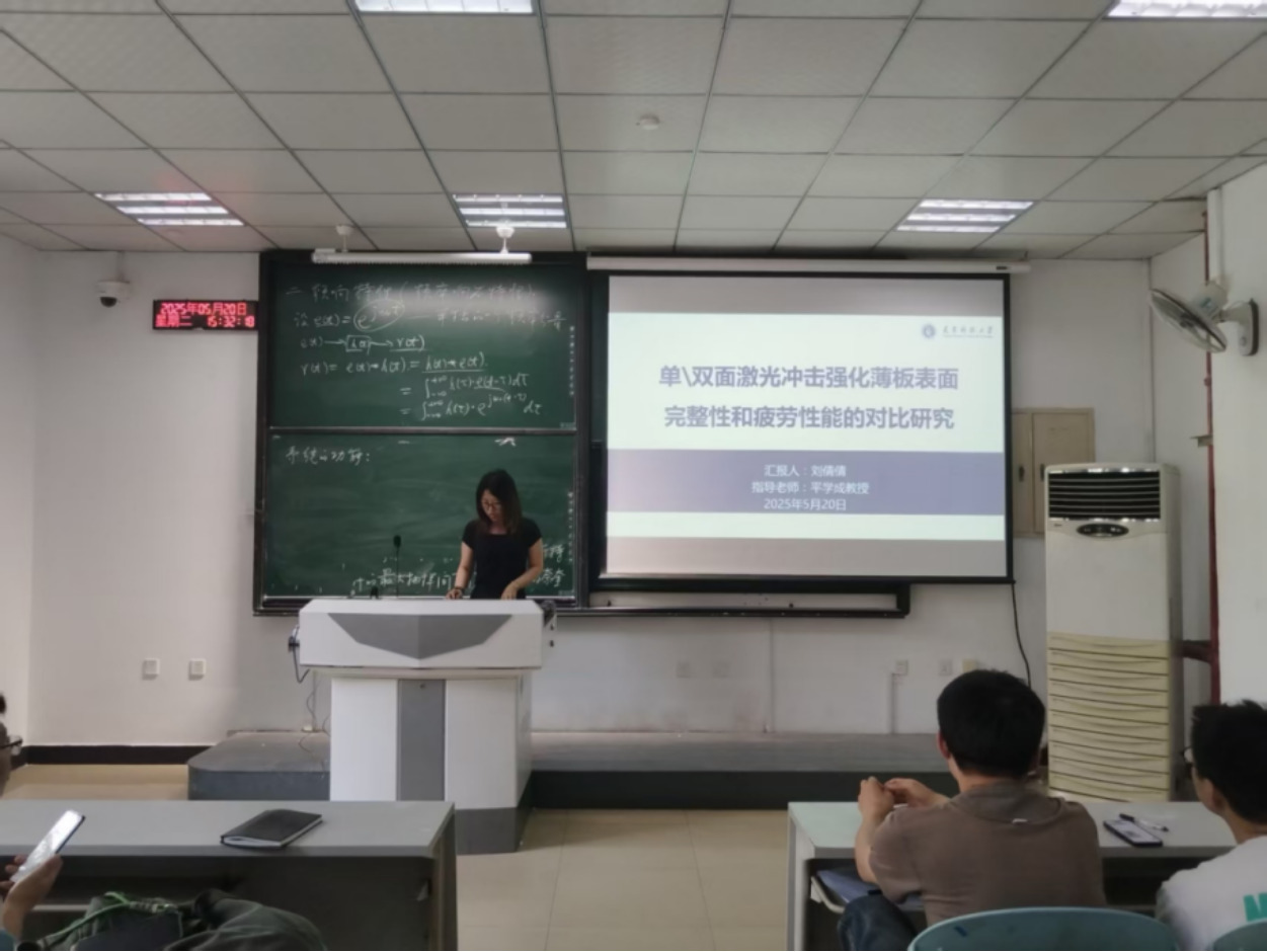 Liu Qianqian presented her research on laser strengthening techniques for thin-walled components. Her work addresses a significant gap in domestic research on strengthening such components. She conducted a comparative study analyzing the surface integrity and fatigue performance of thin sheets treated with single-sided versus double-sided laser shock peening.