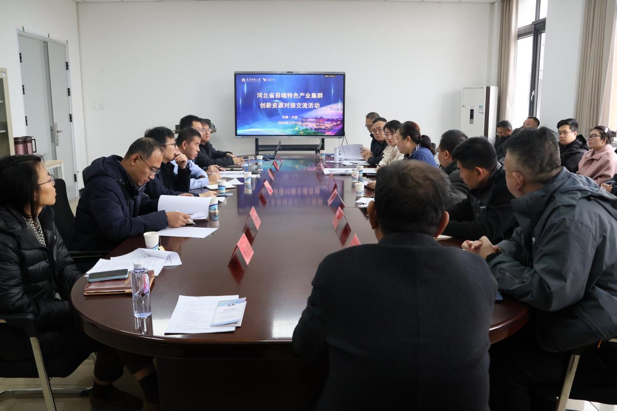 2025年12月12日上午,河北省科学技术厅区域创新处副处长肖娜带领相关部门和地方企业代表一行20余人到访我校,与太阳集团tyc234cc共同举办“河北省县域特色产业集群创新资源对接交流活动”。科技处技术转移中心副主任吴涛,太阳集团tyc234cc副院长李亚、杨硕以及部分教师代表,河北省科技创新服务中心部长刘建、青县科技工信和商务局局长陈鑫等领导以及青县14家企业代表共同参与交流活动。本次活动聚焦县域特色产业集群技术发展需求、企业技术创新难题,旨在共同推动校企对接,加速科技成果转化,促进县域经济高质量发展。交流会由太阳集团tyc234cc副院长杨硕主持。