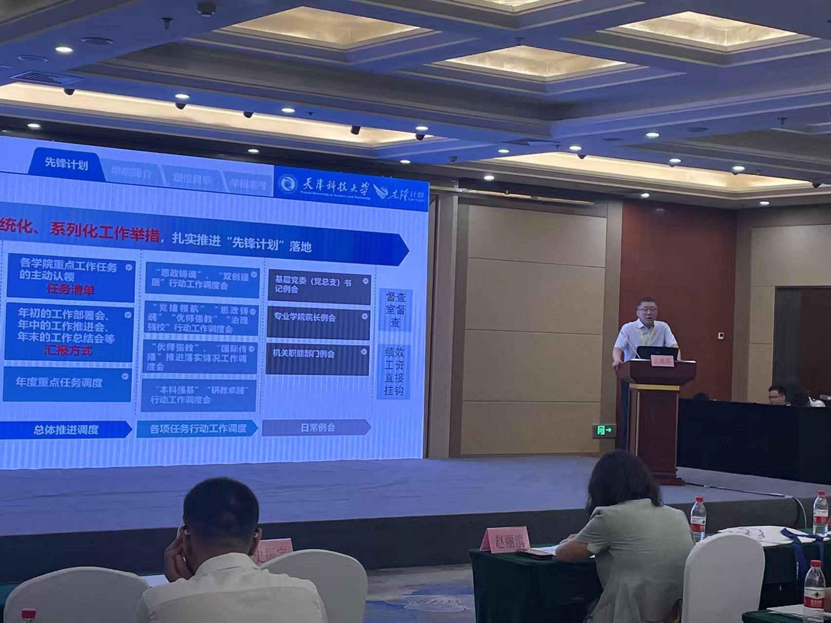 李文辉院长在大会交流中,围绕我校推行的 “先锋计划”展开深入阐述,该计划包括党建领航、思政铸魂、本科强基、研教卓越、双创提质、科技攀登、学科登峰、优师强教、国际传播、治理强校10个“行动计划”和100项重点任务。涵盖行动篇、文化篇和生态篇三个篇章,构成了从行动到思想、从实践到文化、从内部到外部的完整的高质量内涵发展体系。针对太阳集团tyc234cc学科发展,他强调以现代设计与数字孪生、新型材料与先进制造、成套装备与产线系统、智能检测与预测维护等前沿领域为突破口,整合科研平台资源,强化师资队伍建设与重大项目攻关。同时,重点介绍了以“千团千企”活动为核心的校企合作模式创新,通过组建产教融合专项工作小组、学科交叉青年团队、共建产业研究院等方式,推动技术研发与企业需求精准对接,为区域经济发展注入强劲动力。