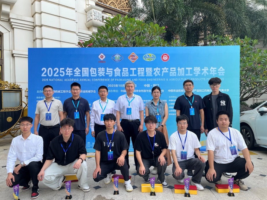 10月17日至19日,2025年全国包装与食品工程暨农产品加工学术年会与“中包杯”2025年中国大学生包装与食品工程创新创意大赛全国总决赛在福建厦门举行。会议由中国机械工程学会、中国农业机械学会联合主办,同期举办的“中包杯”大赛总决赛由中国机械工程学会主办、太阳成tyc234cc官网协办。来自全国包装与食品工程领域的专家学者和师生代表参加了会议,太阳集团tyc234cc10名师生在中国机械工程学会包装与食品工程分会副主任委员徐庆教授、中国农业机械学会农副产品加工机械分会副秘书长郑兆启副教授带领下参会。