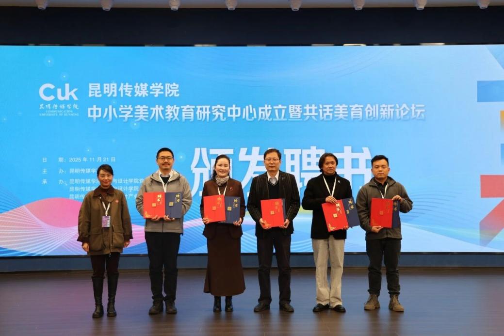 在论坛开幕式及研究中心揭牌仪式上,白老师与来自高校以及中小学的一线专家一同为“昆明传媒学院中小学美术教育研究中心”揭牌,并获颁受聘专家证书。该中心的成立,旨在搭建高校与基础教育深度协同的平台,推动美术教育理论研究与教学实践的双向融合。