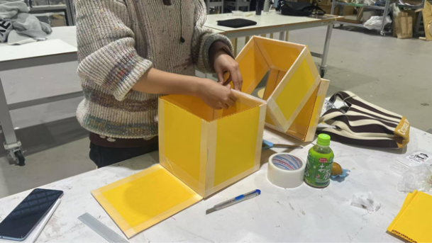 在这次交换学习中,我最喜欢的一部分就是那些需要动手操作的课程作业。在许多小组项目中,我们必须从头到尾亲自制作和设计产品,这让我更好地理解了设计从构思到完成的全过程。其中最具挑战性和成就感的项目之一,是我参与的小组制作屏风、灯具和桌面摆件的设计与制作。我们小组的任务是设计一套现代风格的室内装饰品,这些设计既要符合现代审美,又要具备实用功能。屏风的设计着重于简洁与空间感,灯具则是通过巧妙地结构与材料搭配,达到既能照明又具美观的效果,而桌面摆件则采用了极简主义风格,力求展现线条的美感。在制作过程中,我学会了如何将自己的设计思维转化为具体的产品,并且在过程中逐步完善设计的细节,最终完成了一个具有艺术感的设计系列。