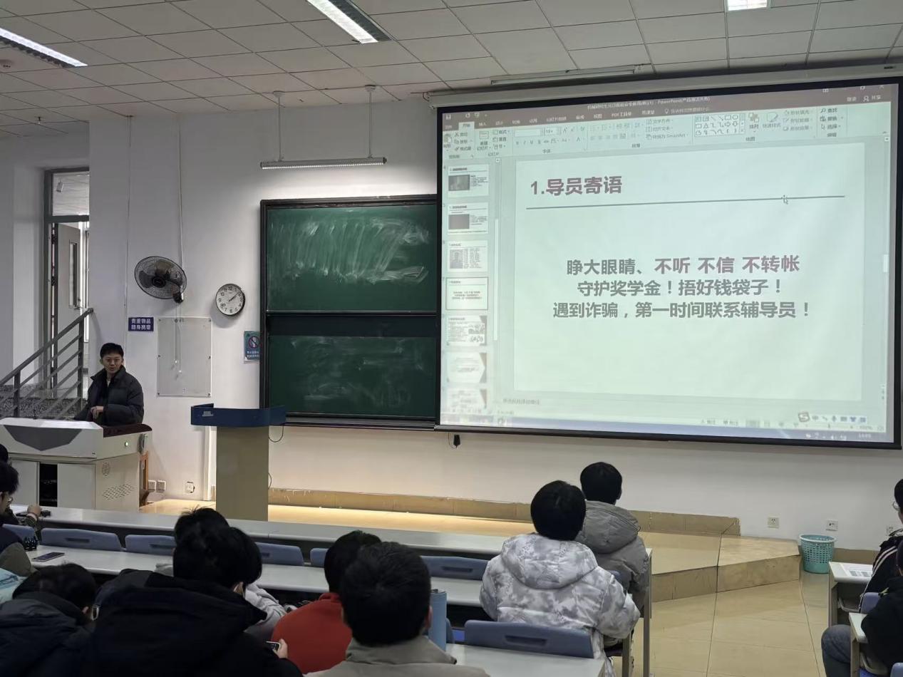 会议围绕“总结、规划、安全、服务”四大主题展开。李晋老师首先就学期末各项重点工作进行了全面梳理与部署,内容涵盖学业与实验规划、职业发展与就业服务、心理健康关怀、防范电信诈骗、学习与生活平衡等多个方面。他强调,期末阶段是检验学习成果、完成科研任务的关键时期,同学们应合理规划时间,保持积极心态。同时,他特别鼓励各位研究生班委积极发挥作用,主动关心同学,加强班级凝聚力建设,营造互助共赢的良好氛围。