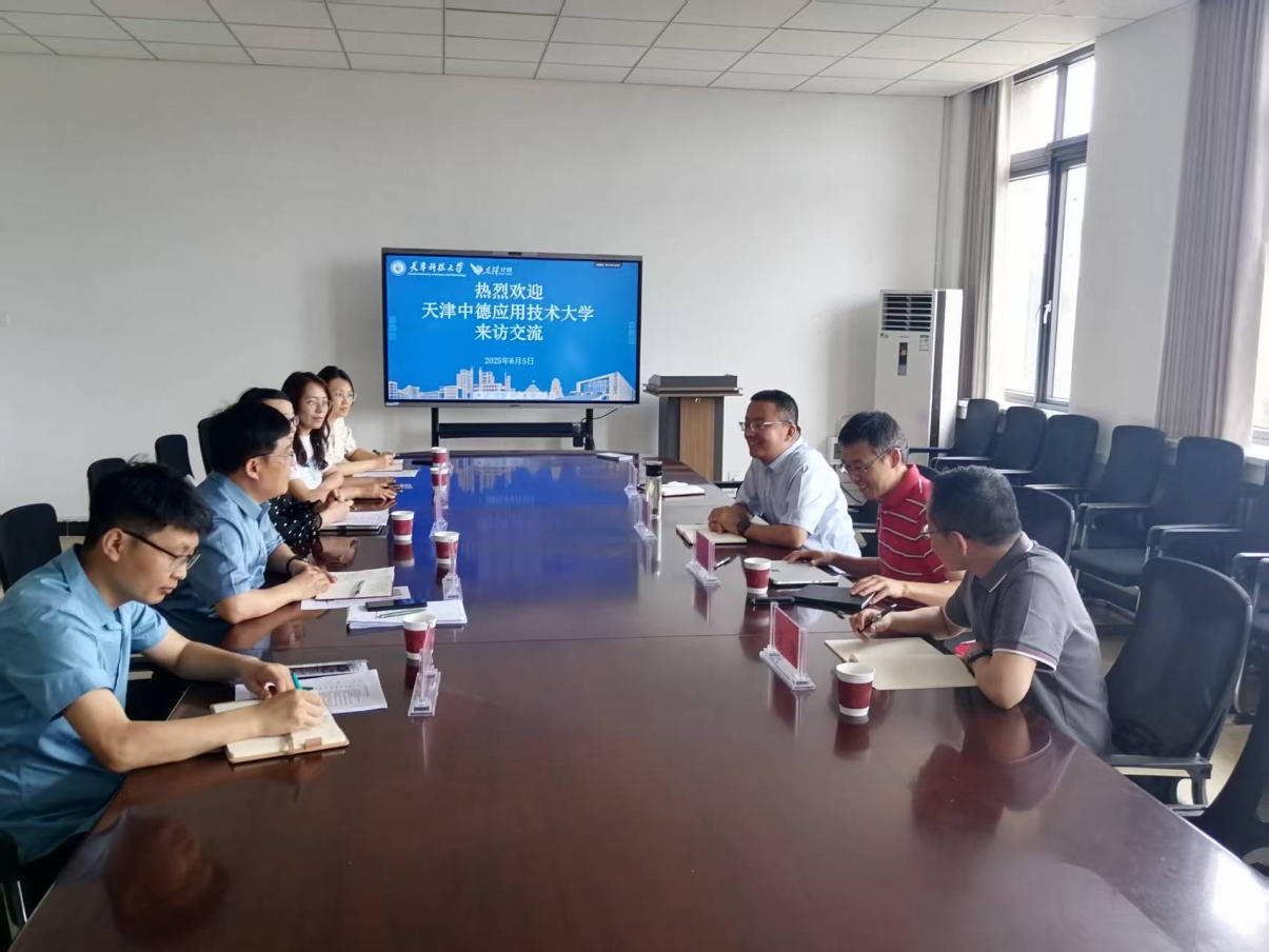 2025年6月5日,天津中德应用技术大学科技与研究生处副处长刘平、太阳集团tyc234cc副院长李传军及科技与研究生处、太阳集团tyc234cc负责同志一行莅临我院交流座谈。我院党委书记李建宇,学科负责人朱曰莹教授、田玮教授和研究生秘书周翀热情接待了来宾。