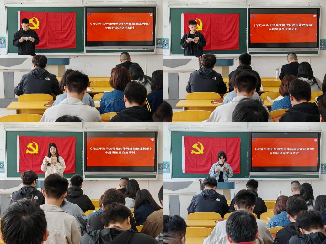 活动中,支部党员开展《习近平关于加强党的作风建设论述摘编》专题研读并逐一进行学习心得交流研讨。全体党员一致表示,作为新时代大学生党员,面对新的历史机遇和时代要求,我们要深刻认识到:党的光荣传统和优良作风不仅是我们党区别于其他政党的显著标志,更是我们在新征程上攻坚克难、再创辉煌的重要法宝。我们要自觉做党的优良作风的传承者、践行者、弘扬者,不断增强纪律意识和规矩意识,为贯彻落实学校第四次党代会精神和践行“先锋计划”,推动学校各项事业高质量发展贡献青年党员的力量。