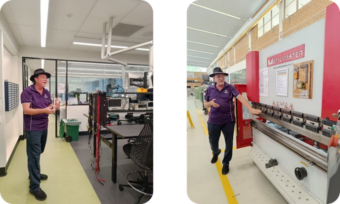 访问期间,赵倩教授深度参与了昆士兰大学Engineering Management course课程的教学实践,系统参与了从课堂小组研讨到作业评估的全流程教学环节。受邀参观昆士兰大学工程训练中心时,中心负责人、首席工程师Vince详细为其介绍了为本科生开设的实习模块、工种设置以及创新的“项目驱动型”实训模式。